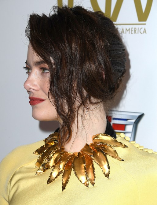 Anyways, Stone also spared no effort styling her hair for the occasion too. Instead of leaving her hair down, she swept it back with a deep side part, leaving a section in the front loose for volume and texture. One thing’s for sure, her brown tresses with hints of red make those green eyes pop and her fair skin radiate.