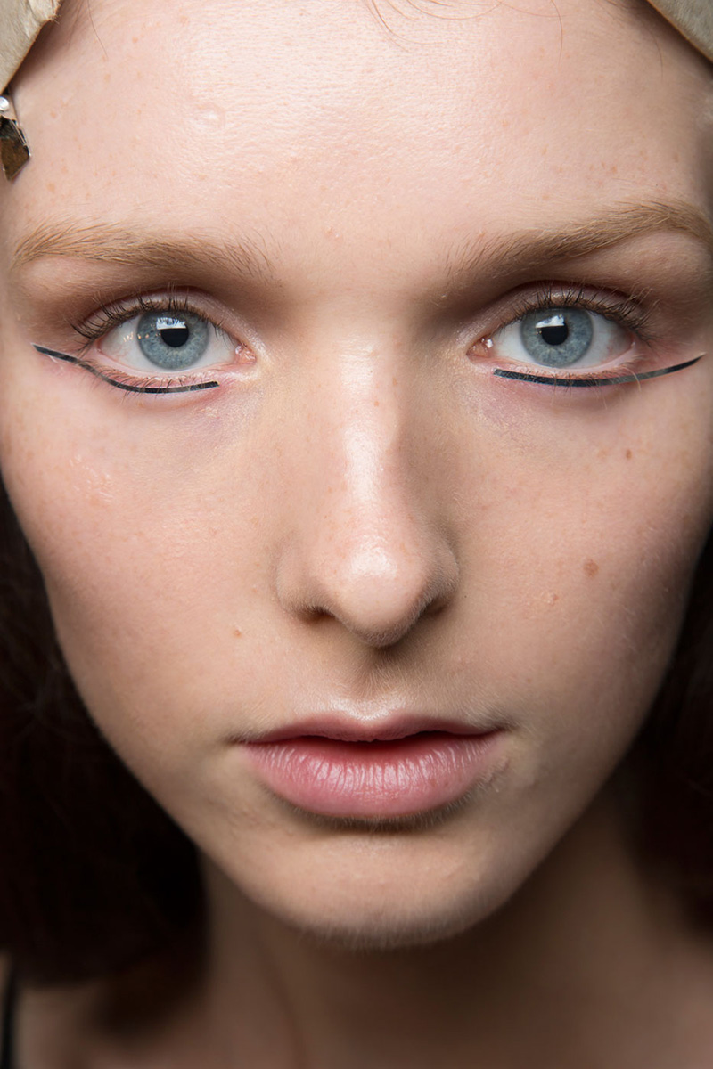 At Ohne Titel, models were made up to look, well, makeup-free, with the exception of baby pink liner used only on the lower lash line. Paired with natural-looking yet bold brows and a dot of silver on the temple, the look was current and interesting, and worked well in the context of an otherwise bare face.
