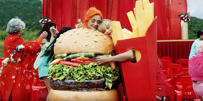 To show their fans a better way, the ladies have officially patched things up. Katy appeared in Taylor’s “You Need To Calm Down” video where the two ladies hugged it out wearing burger and fry costumes.