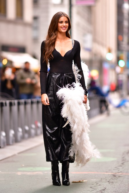 And Stella Maxwell and Taylor Hill even traipsed around New York City wearing white, feathery wings (layered over otherwise-casual looks—not the lingerie they’ll be wearing in the show).