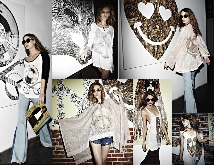 Combining her love of art and boho chic fashion, Lauren Moshi’s line of graphic t-shirts, tanks, lace ponchos and other California-cool closet staples have become a hit with some of young Hollywood’s fashion set. Celebrity fans include the likes of Emma Roberts, Selena Gomez, Vanessa Hudgens, Emma Watson, Ashley Tisdale as well as models Alessandra Ambrosio and Brooke Burke.