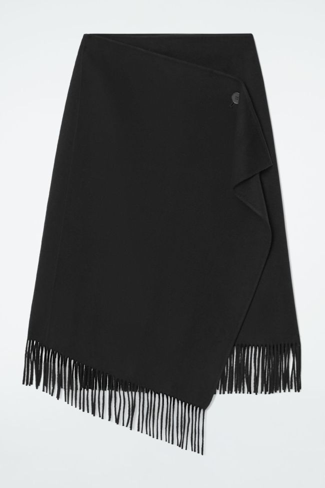 Fringed Wool Midi Wrap Skirt