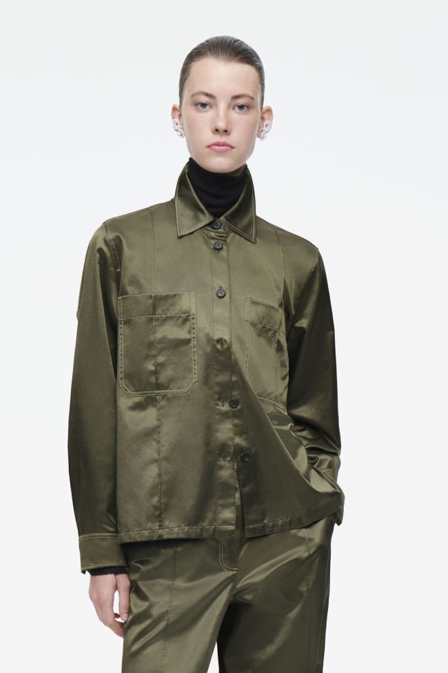 Pintucked Satin Utility Shirt