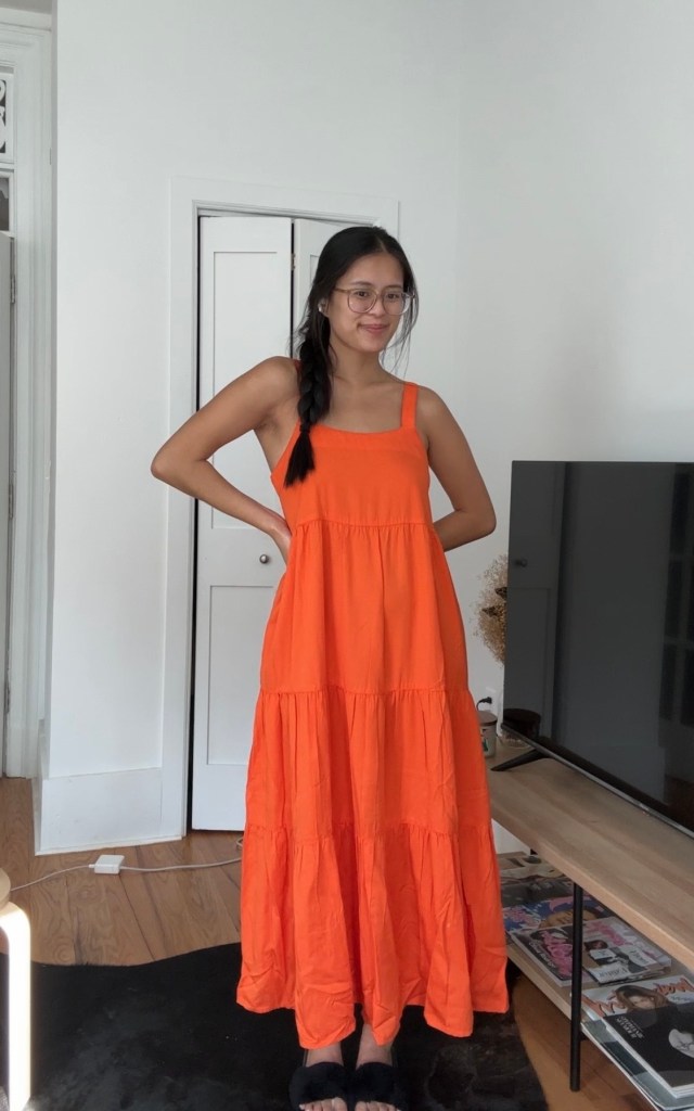 “I’ve never bought a dress from Amazon, but this maxi dress from The Drop has officially changed my mind. Not only does the fabric feel thick and durable (it’s made from 100 percent cotton and has a cotton lining), but it also looks so good on. The cutouts are lined with an elastic band, which makes the fit super comfortable for all-day wear. It also provides a little bit of stretch in case you’re in between sizes. I got an XS and would say it fits true to size. The dress also cropped at the perfect spot right above my ankles (for reference, I’m 5’5”).