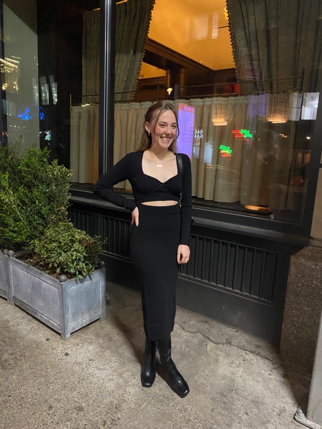 “For all my petite girlies, this little black dress is the perfect transition piece for warmer days. The body hugging fabric accentuates your curves in all the right places, while the gorgeous cutout shows a classy glimpse of skin. I’m 5’3” and this dress falls right above my ankle making it ultra flattering for my height. I’m so obsessed!”