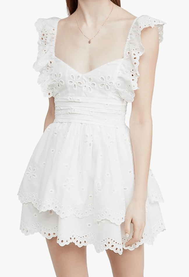 This eyelet mini dress gives off major cottagecore vibes. If I was planning a trip to Italy or just wanted to act like I was, this is exactly what I would wear.