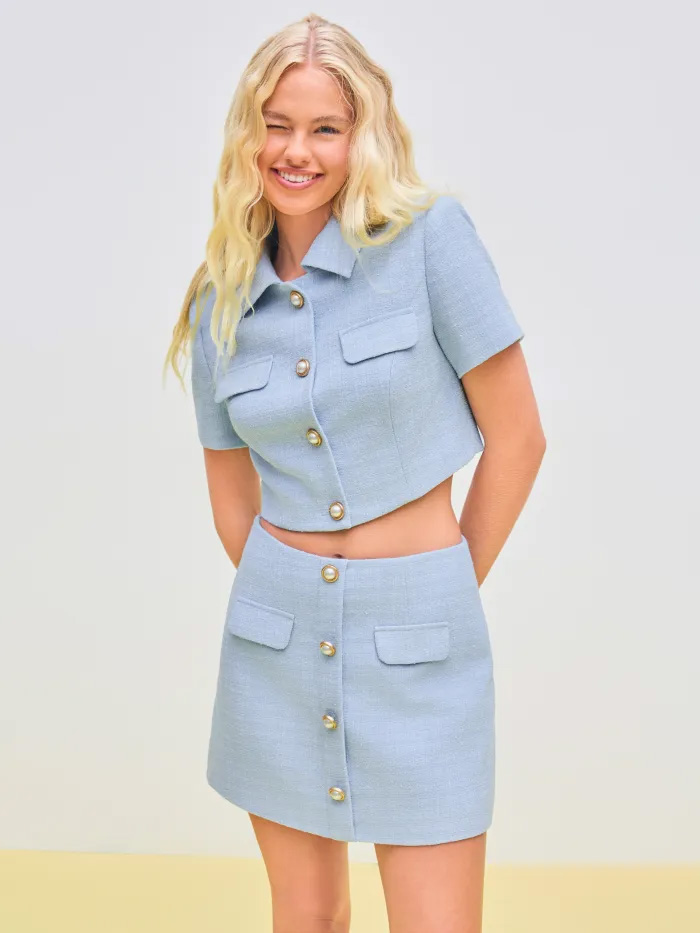 But what I liked even more was this polished pink set with an adorable bow in the back. An outfit like this is typically out of my comfort range, but I honestly was surprised by how confident it made me feel as soon as I slipped into the two pieces. The shorts are incredibly comfortable, and I could totally see them working with other pieces in the collection (or even shirts I already own).
