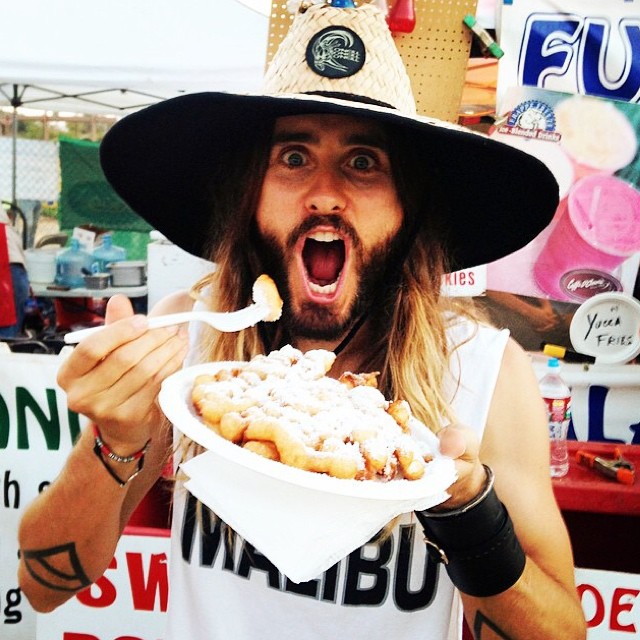 Jared Leto bites into fried dough at what one can only assume is his second home, Coachella.