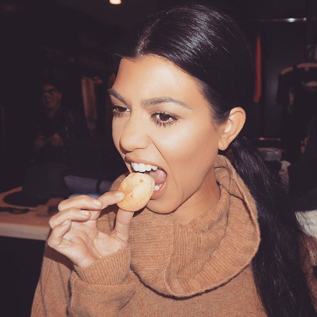 Newly fitness-obsessed Kourtney Kardashian nibbles a cookie.