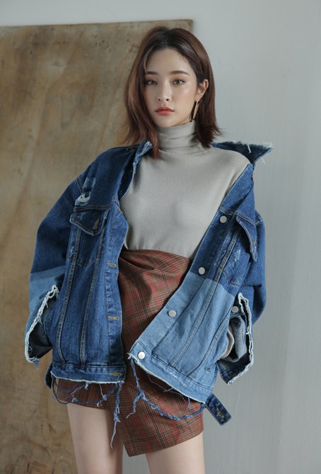 Pre-Damaged Denim Jacket, $70; at Style Nanda