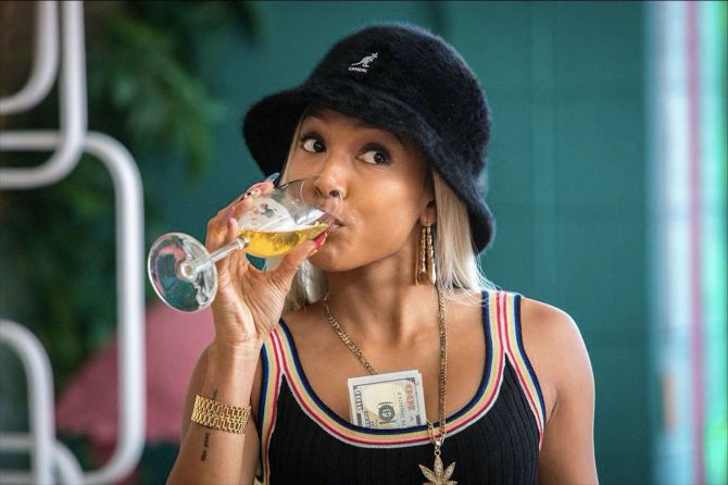It might appear that we’ve seen it all on Claws in its first two seasons, but according to Tran, we haven’t seen anything yet. “This season is about the girls leveling up and stepping into this new phase and this new luxury of their life,” she explained. “Something that they’s not necessarily used to. Also, our style has definitely evolved. We’ve got a little bit of extra money now, so we can splurge a little bit more on our outfits and makeup and heels. This season, you will see that on the screen as well. Just our entire looks and our energy is just very much elevated–but elevated in the palm ghetto way.”