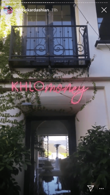 To celebrate her big day, Khloé wore a pink corset (she had to match the decor) along with her diamond choker which spelled out “True” on it. Kylie obviously spent a ton of time on the decor for the venue. She had flowers and balloons strung up all around the party. Though the flowers were all pink–the balloons were an assortment of pinks, golds, and silvers. There was even a neon pink sign that read “Khlomoney.”