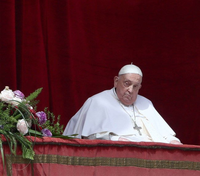 Pope Francis appears from the Loggia of Benedictions of St. Peter’s Basilica on Easter Sunday to participate in the Easter message and Urbi et Orbi blessing. Vatican City, April 20 2025. Grzegorz Galazka/Archivio Grzegorz Galazka/ Mondadori Portfolio via Getty Images)